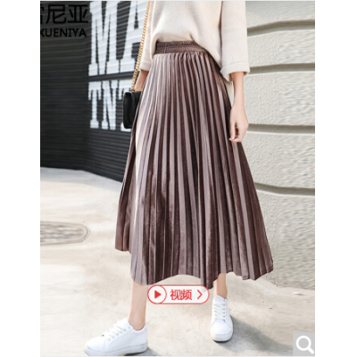 商品名称:梦雪尼亚半身裙中长款百褶裙时尚金丝绒裙子女裙秋冬