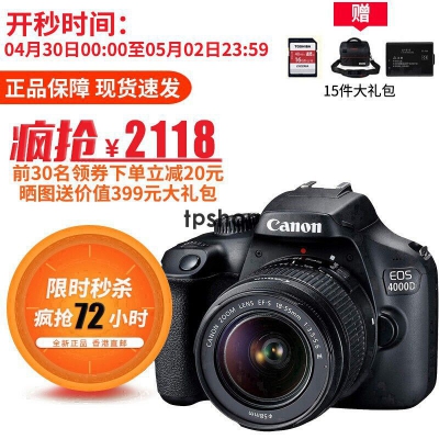 商品名称:佳能(Canon)EOS 4000D 单反相机 APS画幅 入门级高清数码照相机 3000D同款新款 单机+18-55mm III镜头