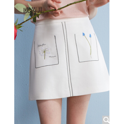 商品名称:2017年夏装新品简约百搭高腰A字裙短裙绣花图案半身裙